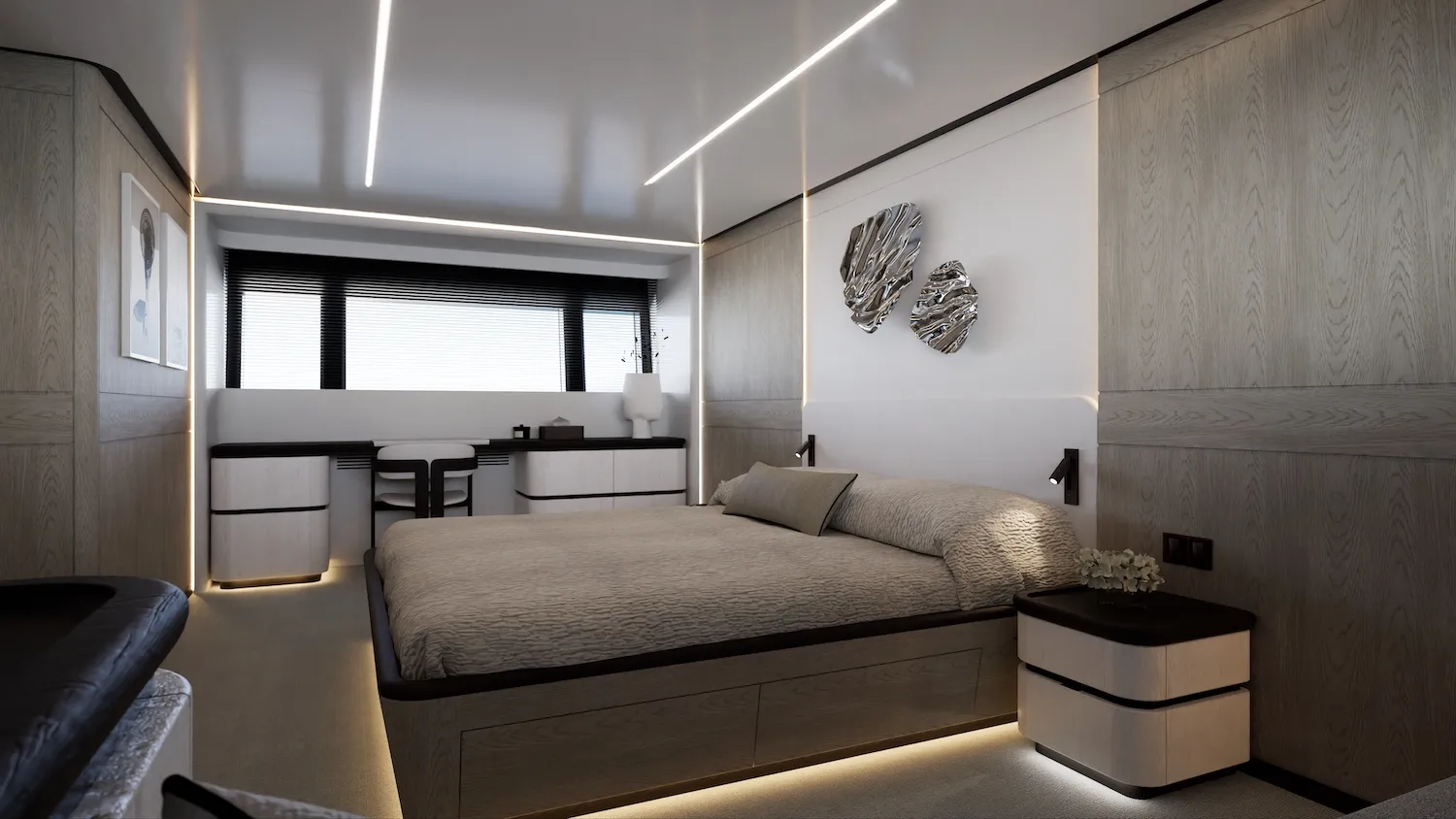 The new Pearl 100 Hybrid is the shipyard’s most ambitious model yet, and the first in the fleet to feature hybrid propulsion. At 30 metres, this new raised pilothouse superyacht combines elegant innovation with responsible engineering, offering five luxurious staterooms and carrying forward the brand’s award-winning legacy.